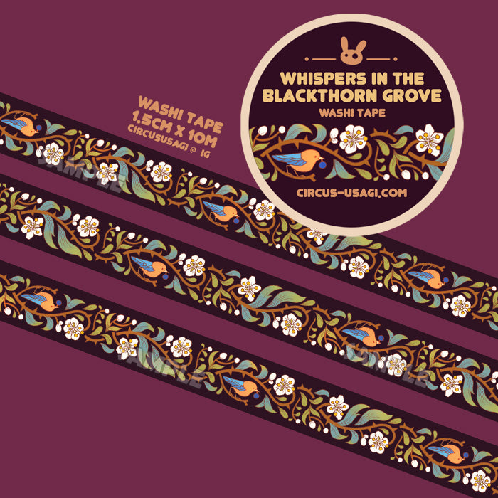 1.5cm wide washi tape. each roll has 10m worth of tape